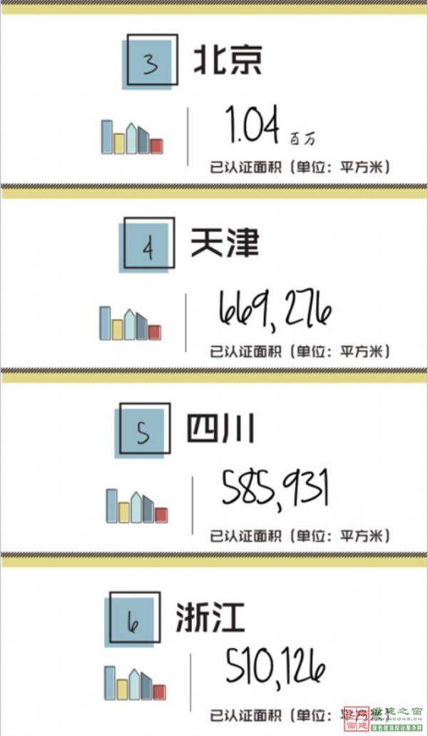 上海以超過(guò)240萬(wàn)平方米的LEED認(rèn)證空間位居榜首,廣東和北京均以超過(guò)1百萬(wàn)平方米的認(rèn)證面積分列二三名。這項(xiàng)排名僅基于2015年獲得認(rèn)證的項(xiàng)目,并非基于中國(guó)各省市歷年以來(lái)的認(rèn)證空間總量。